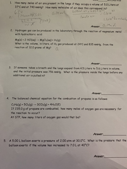 Solved 1 How Many Moles Of Air Are Present In The Lungs If Chegg Com